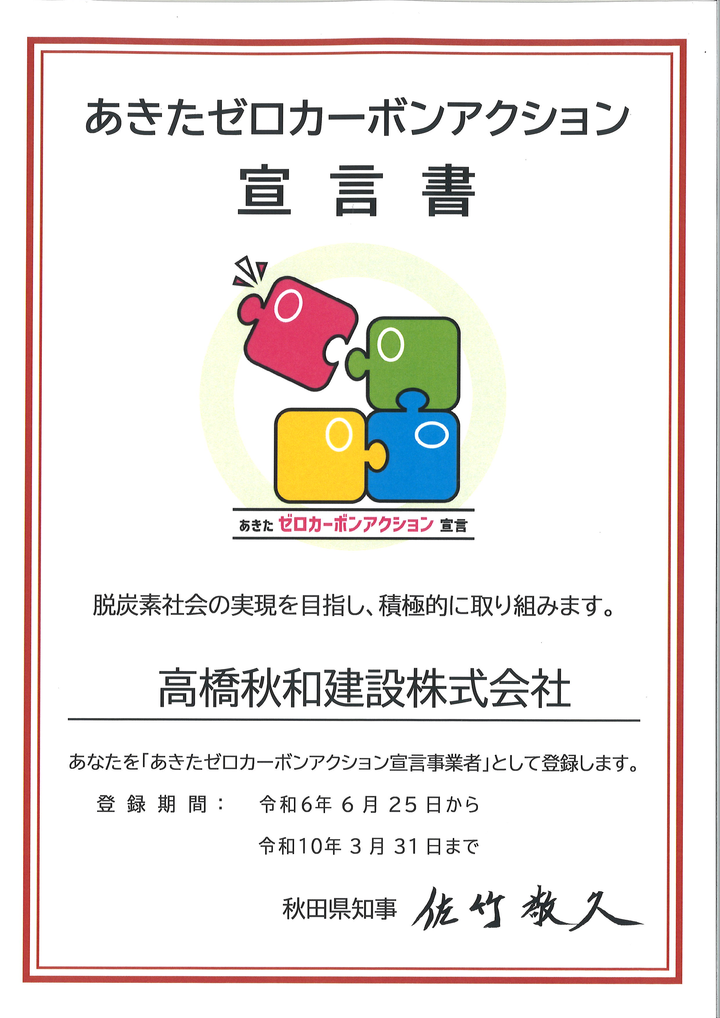 令和7年2月27日、秋田県由利地域振興局にて感謝状の授与式が執り行われました。